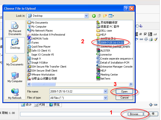 3、找到要贴的图,选“打开”,回到论坛界面点“上传”,图片就上来了;
